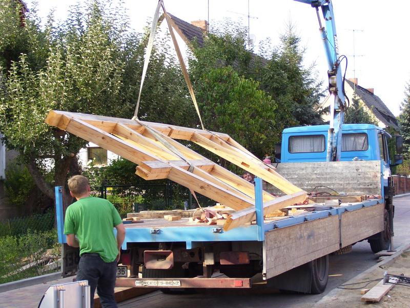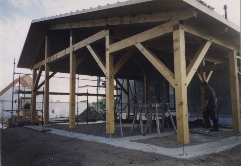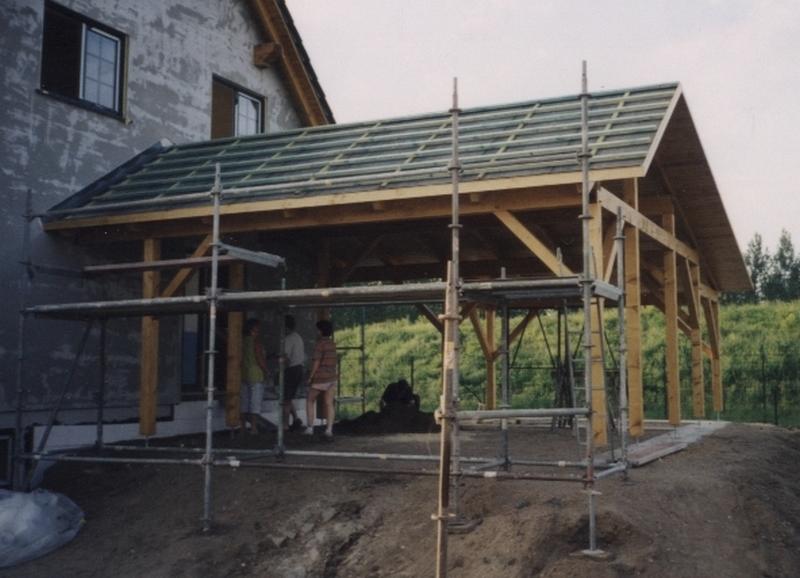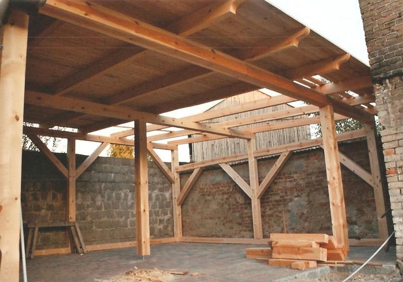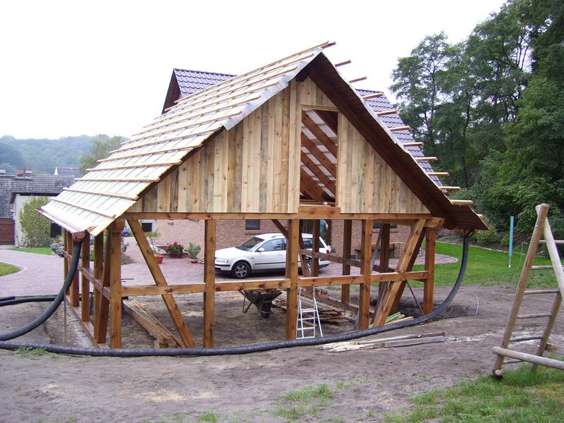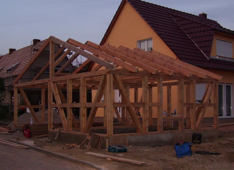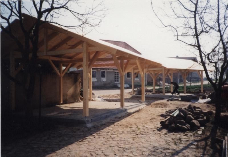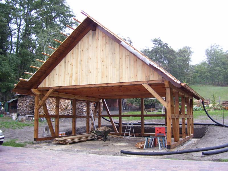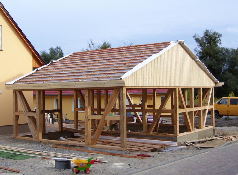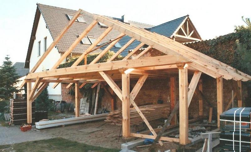 | Fachwerk-Carport - Pfettendach mit einfachem Hängewerk |