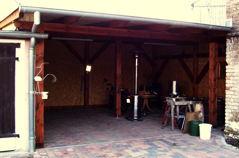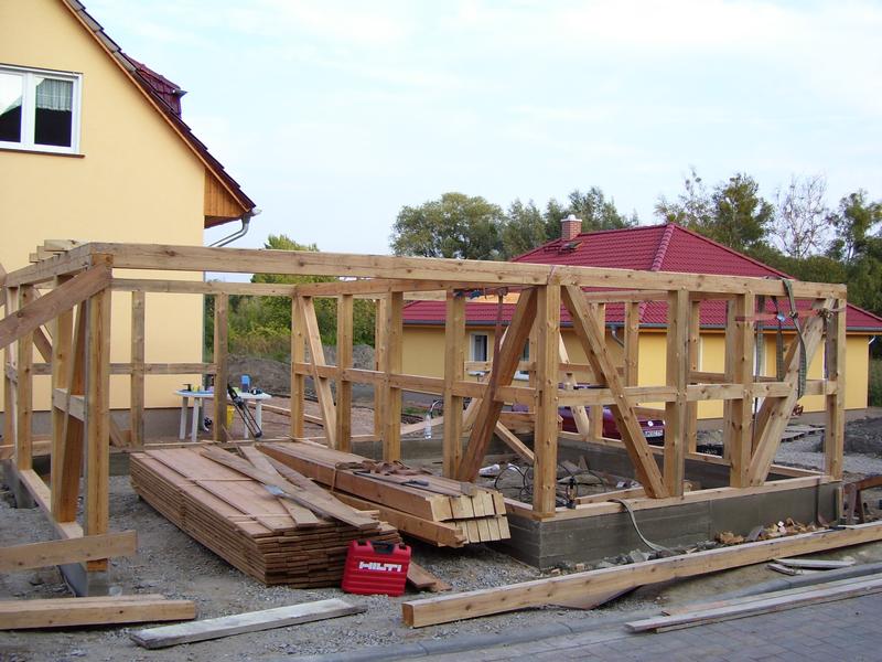 | Fachwerk-Carport mit Geräteschuppen |