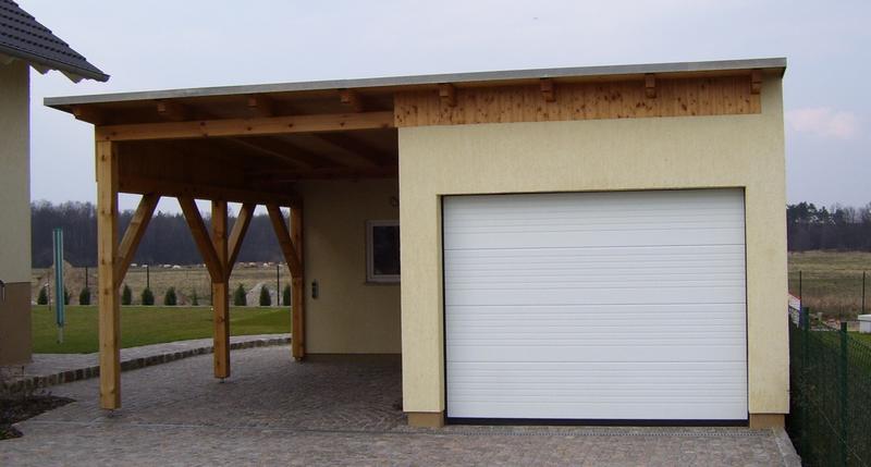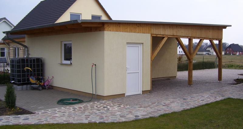 | Carport mit Schleppdach integriert in massive Garage |