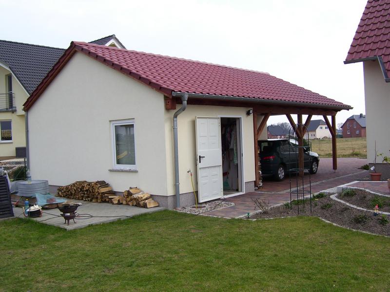| Carport mit Satteldach integriert in massive Garage |