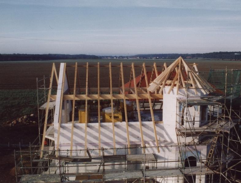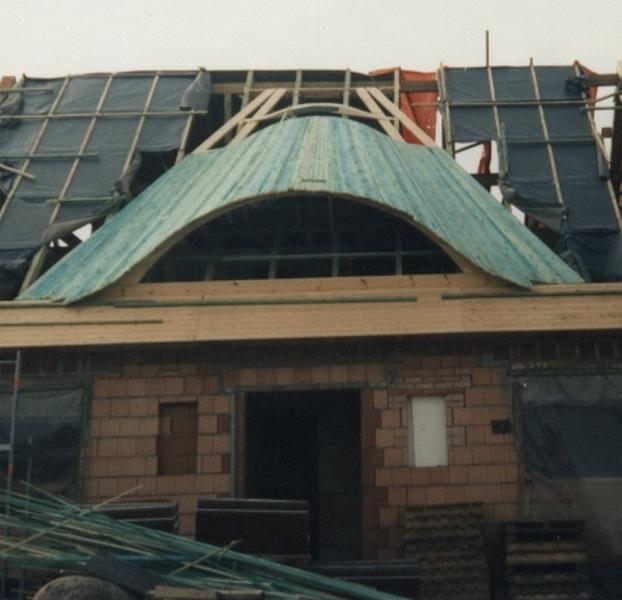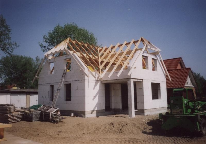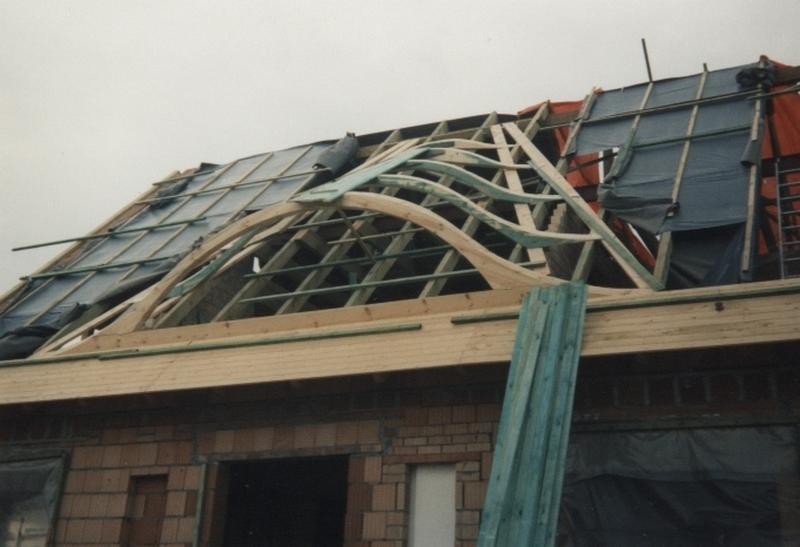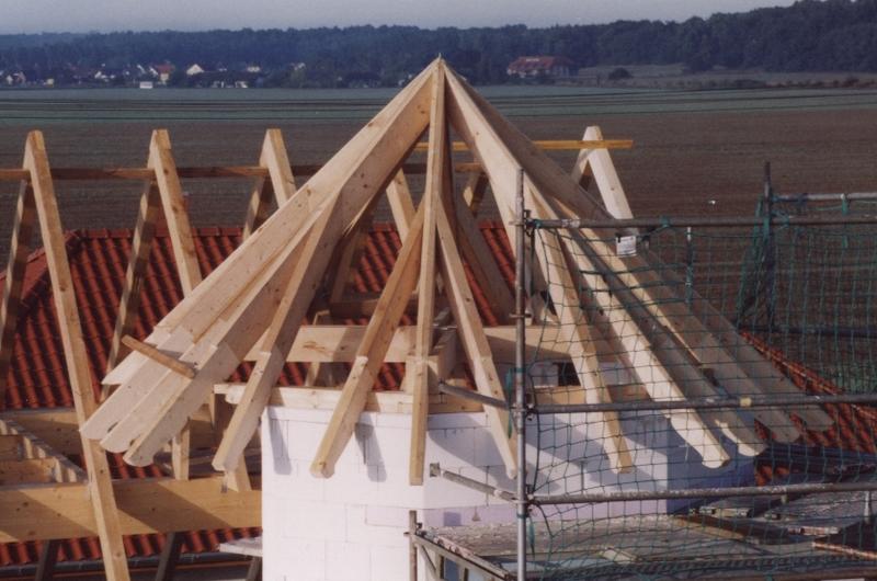 Pfetten-Dachstuhl mit 42° Dachneigung und ausgestelltem Erker |